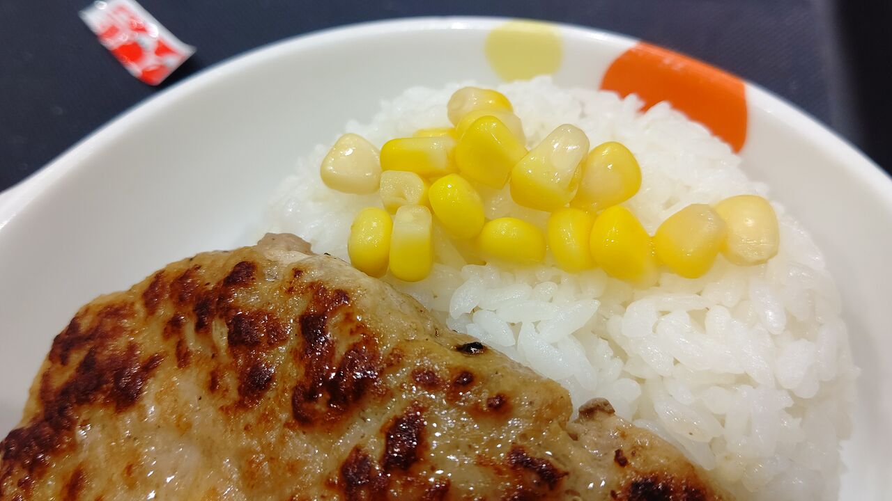 なぜ、ご飯の上にコーン?