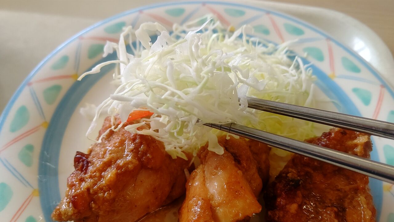 キャベツの千切りがついていますね・・・💪